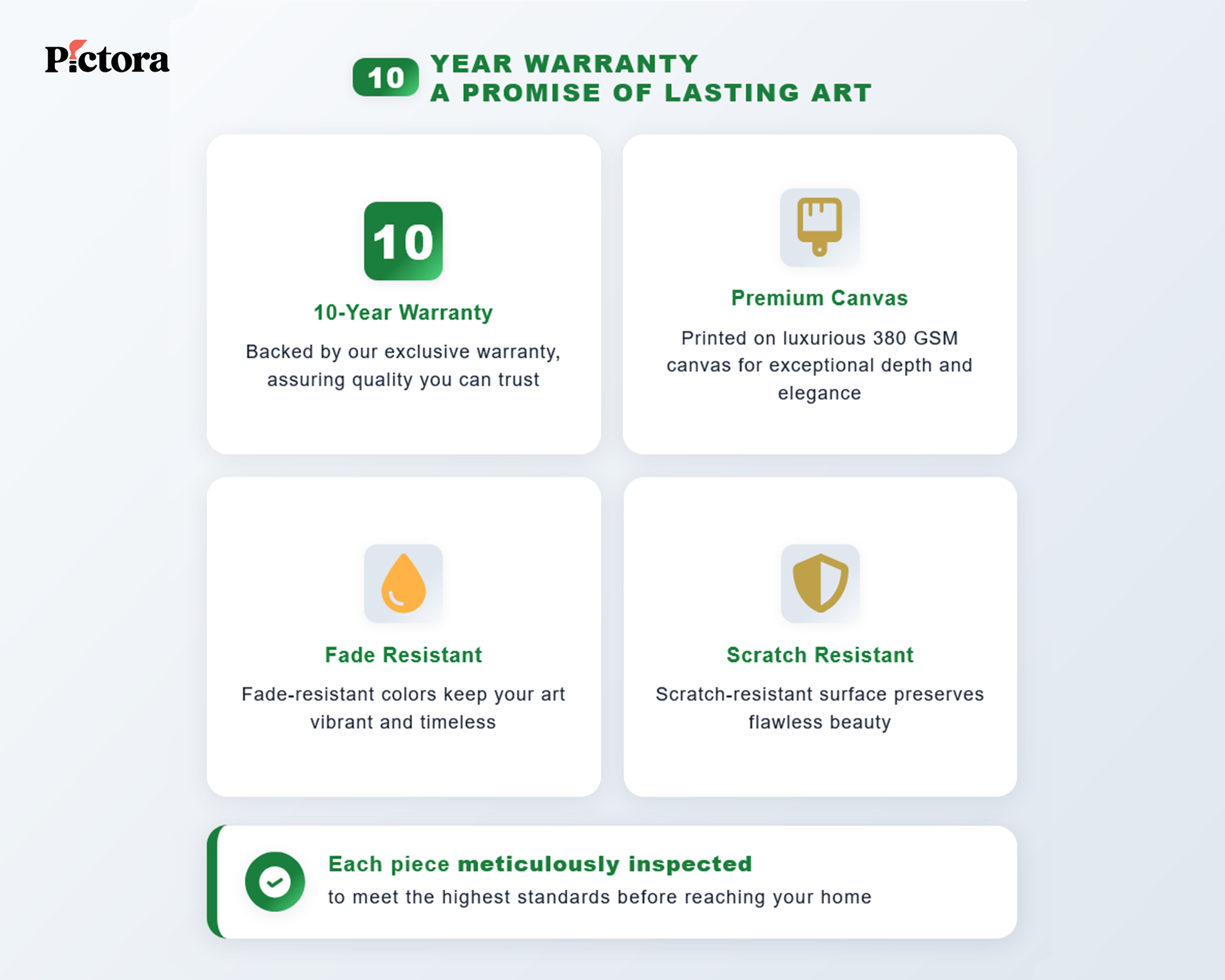 Printed on luxurious 380 GSM canvas for exceptional depth and elegance